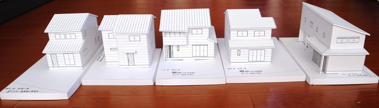これまでの設計・監理させていただいた建物のペーパークラフトの一部 |